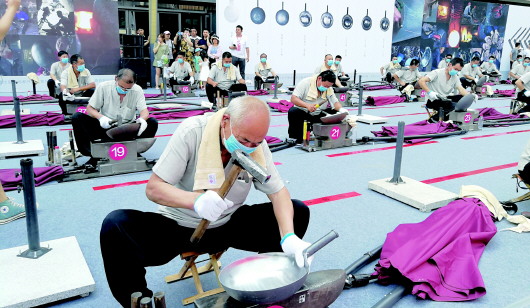 8日是2019“文化和自然遗产日”,恰逢中国传统节日端午节,作为山东非遗的代表——章丘铁锅现场展演慈善捐助义卖活动盛大举行。在现场,匠人锻打区的70位铁匠师傅分为四排,从第一排到第四排锤声依次响起,同时开始计数,活动期间70位师傅向总计360万锤发起冲击。