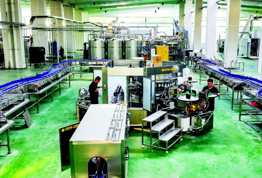 图为乐陵市经济开发区的汇源果汁数字化生产车间,技术人员正在调试自动生产线。 贾鹏/摄 |
